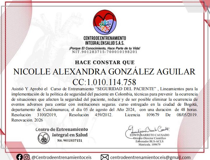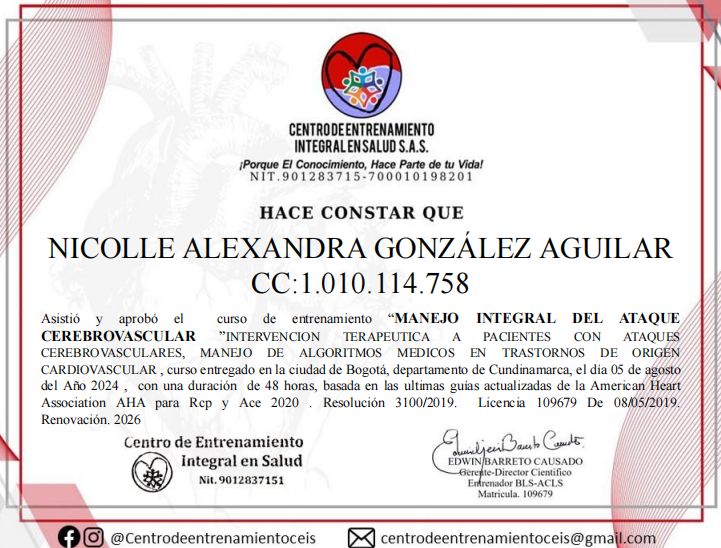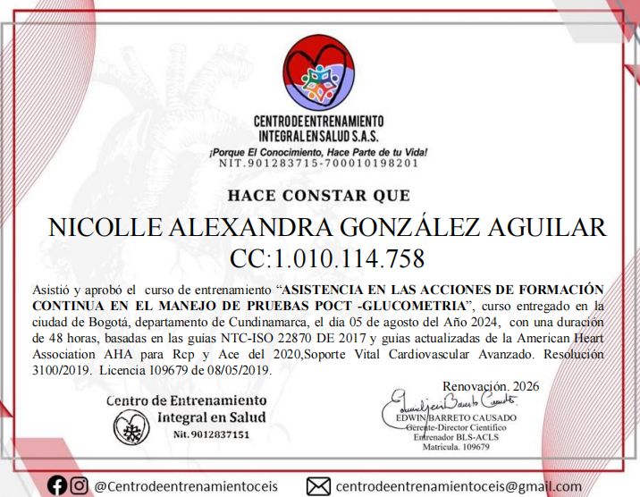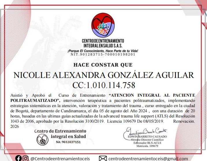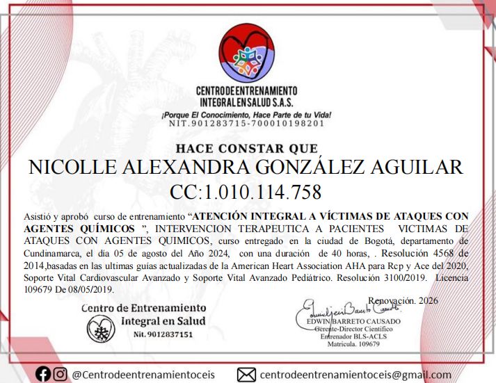 Tengo experiencia en realizar procedimientos clínicos básicos, además de brindar atención en emergencias y estabilización inicial de pacientes críticos. También estoy capacitada para coordinar el cuidado multidisciplinario, educar a los pacientes en la prevención de enfermedades, y mantener una documentación médica precisa y organizada.